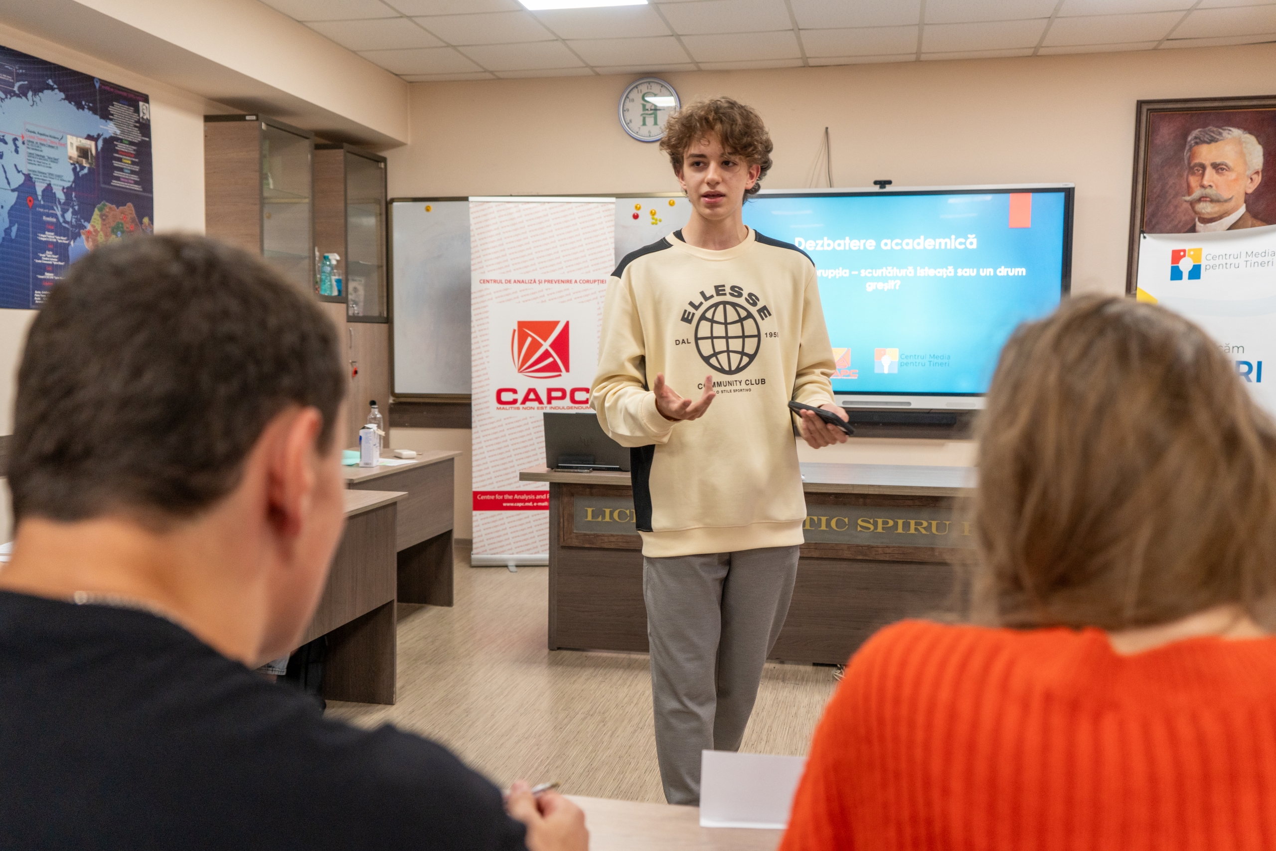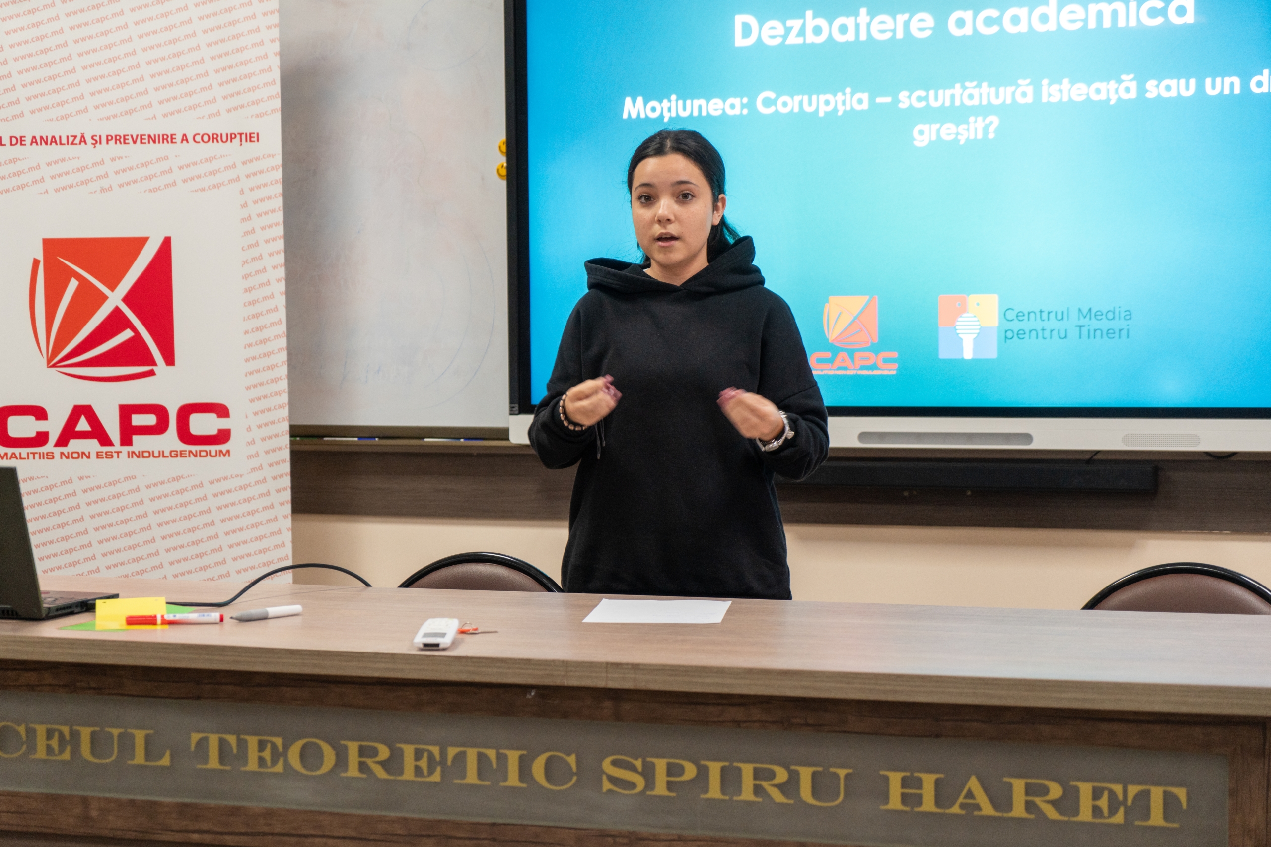 Centrul de Analiză și Prevenire a Corupției (CAPC) în parteneriat cu Centrul Media pentru Tineri (CMT) i-a provocat pe elevii Liceului Teoretic „Spiru Haret” la cea mai contradictorie dezbatere din viața lor.