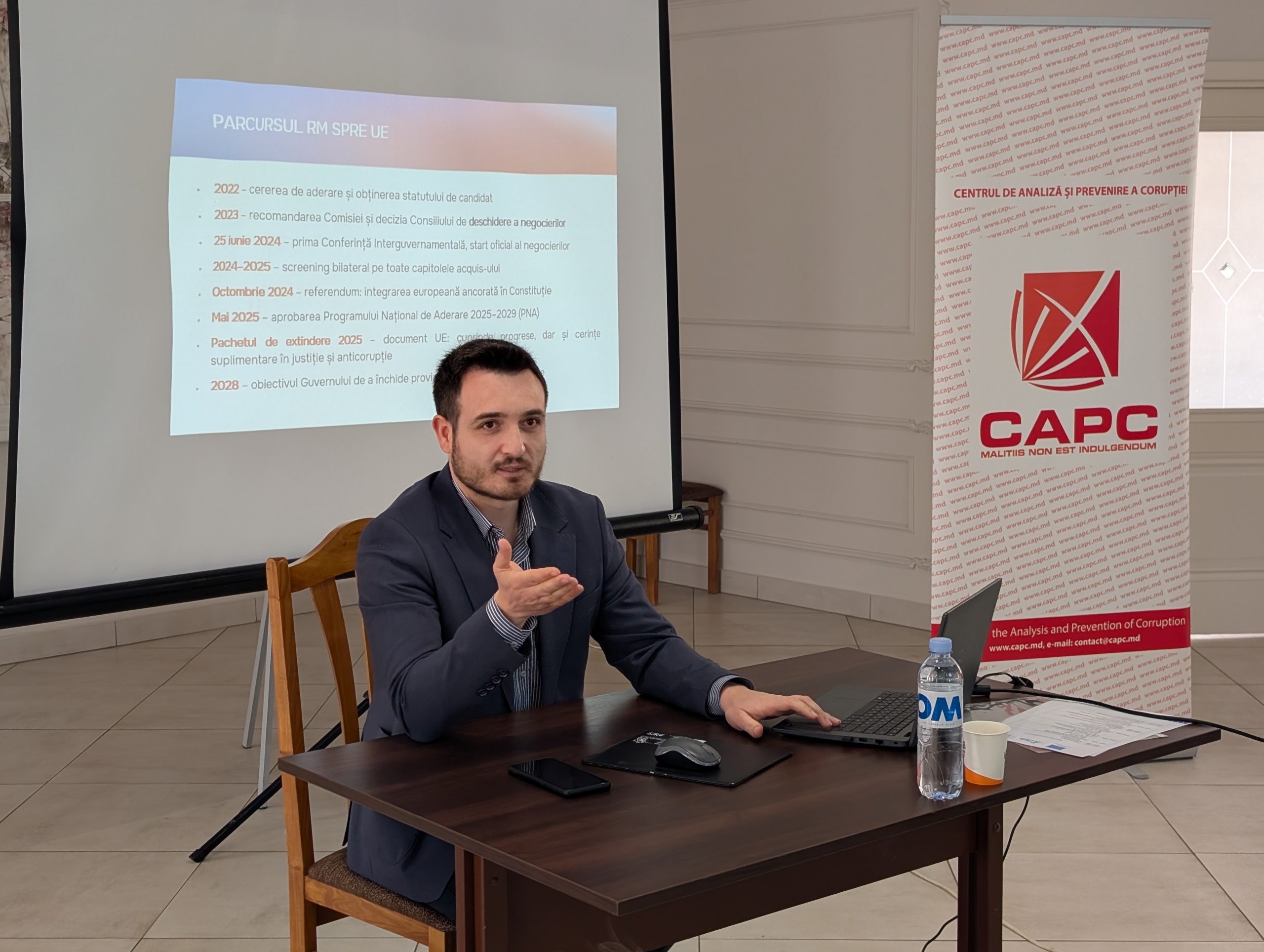 Centrul de Analiză și Prevenire a Corupției a demarat consultările regionale privind integrarea europeană și reformele anticorupție. Prima rundă a avut loc la Cahul și a reunit aleși și funcționari publici locali, reprezentanți ai organizațiilor societății civile și ai business-ului local.